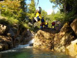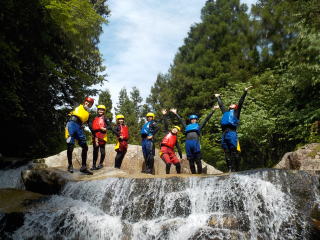 | キャニオニングツアースタート、川流れ、スライダー、滝遊び、飛び込みなど、当日川のコンディションによって、最も楽しめる遊びをガイドがチョイスして体験してもらいます。深い淵では岩から思いっきり飛び込みにチャレンジできます。エンジョイキャニオンスイミング!! | |