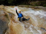キャニオニングスマイルコースは通常行われる、半日コースの内容をギュギューっと凝縮した価格も内容もスマイルなコースです。定番の遊びである、川流れ、飛び込み、スライダーは必ず体験できます。